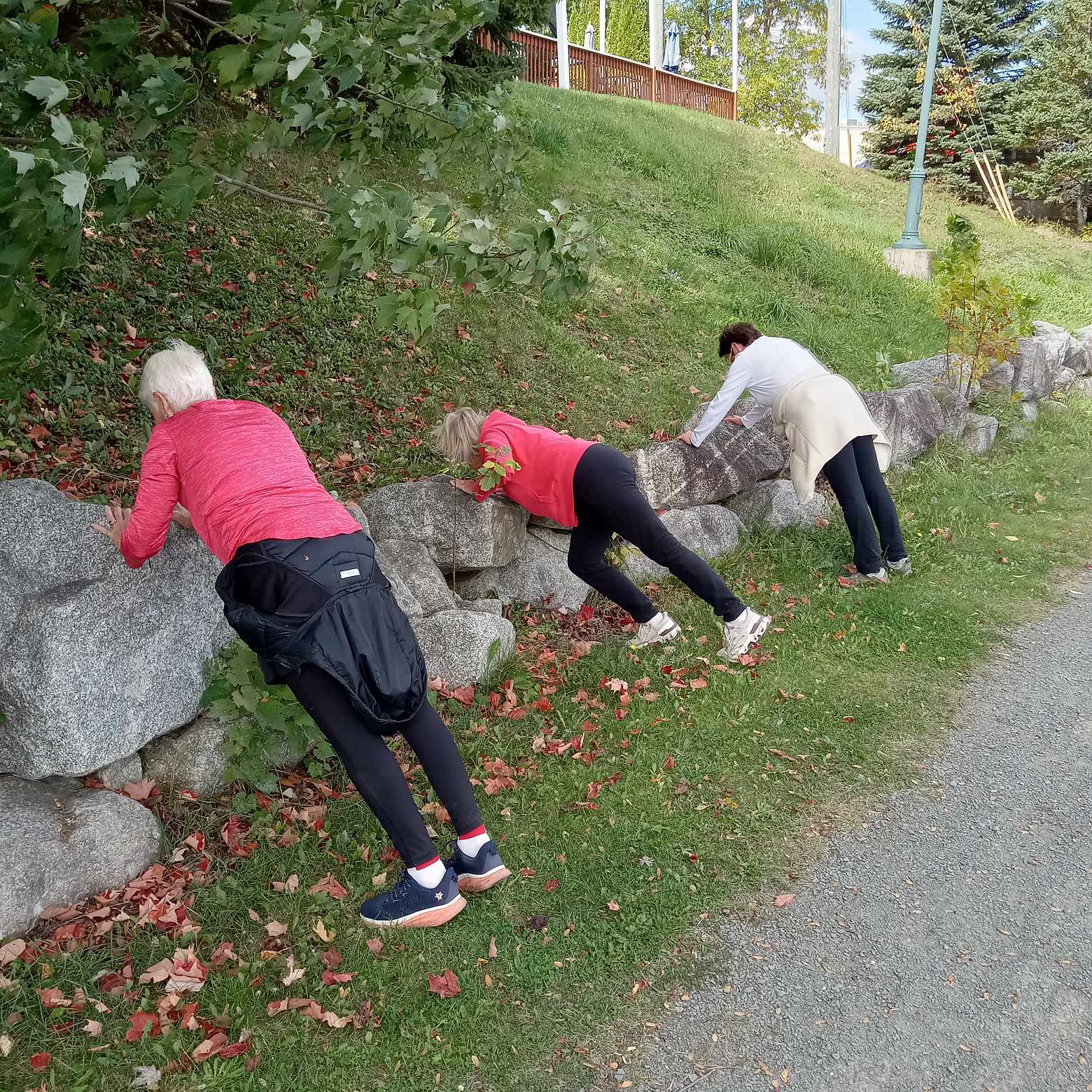 “The three ladies that joined me all said that from now on when they went out for walks they would look at the world differently and see it as a “playground” they could use to have more fun and challenge themselves along the way. They were surprisingly nimble and unselfconscious and I can’t wait to do it again!”